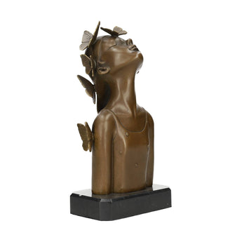 A beautifully crafted bronze sculpture of a girl with butterflies. This expressive bust is detailed, refined, and made with high-quality craftsmanship. A striking piece that brings elegance and artistic charm to any interior.
