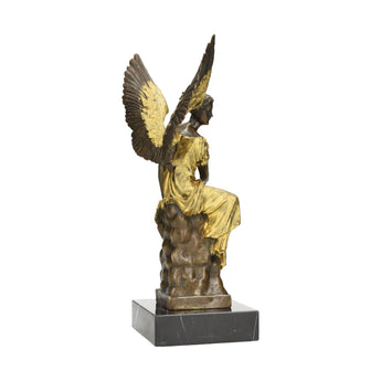 A beautifully crafted golden bronze angel sculpture with elegant wings and refined detailing. This graceful figure brings a serene and uplifting presence to any interior, making it perfect for collectors or anyone who appreciates symbolic and spiritual artwork.