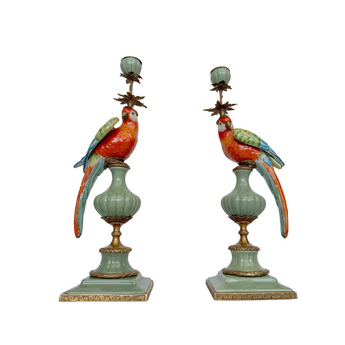 Add joy, color, and elegance to your décor with this enchanting pair of parrot candle holders, a true celebration of nature and craftsmanship.