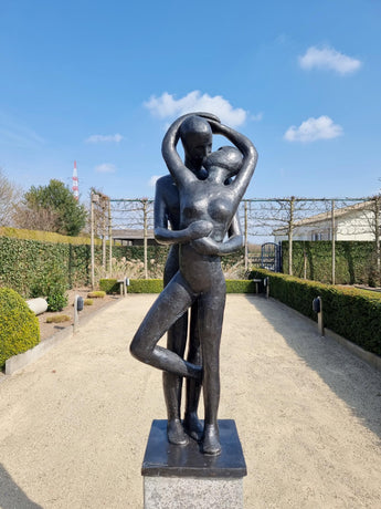 Large Modern Bronze Embracing Couple Sculpture | 98 cm / 39 in | Contemporary Garden Art & Romantic Gift