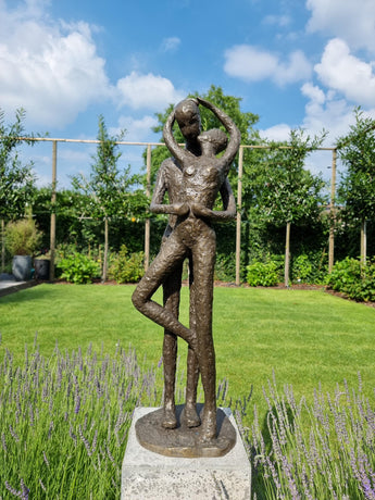 Bring modern elegance, romantic beauty, and fine craftsmanship into your home or garden with this signed bronze embracing couple sculpture. Order today to celebrate love through art.