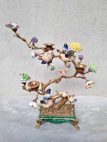 Bring timeless luxury and artistic refinement into your home with this bronze and porcelain birds and flowers candlestick — a captivating statement of beauty and craftsmanship.