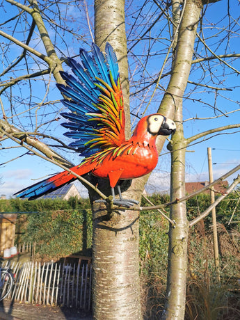 Colorful Metal Parrot Sculpture | 38 cm / 15 in | Tropical Decor, Garden Art