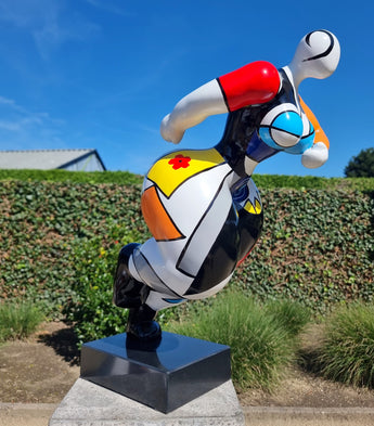 A beautifully designed contemporary sculpture of an abstract woman, captured in a pose that suggests both movement and freedom. This elegant artwork radiates strength, power, and grace — a perfect centerpiece for modern interiors or art collections.