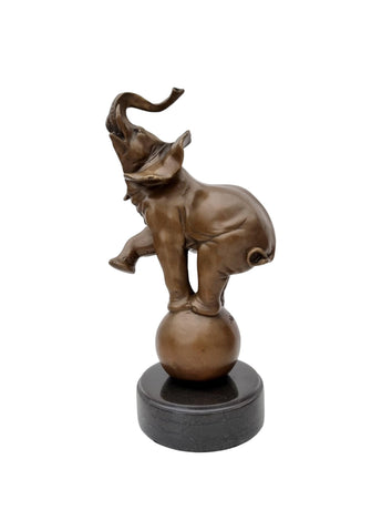 A beautifully crafted bronze sculpture of a balancing circus elephant standing proudly on a ball. This expressive and detailed artwork captures movement, strength, and playfulness, making it a standout decorative piece for any interior.