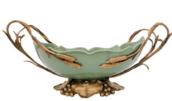 Enhance your interior with the Refined Elegance Ceramic Bowl with Bronze Ornaments — an exquisite piece that harmoniously combines delicate ceramic artistry with timeless bronze detailing. Golden bronze waterlilies and reeds flow gracefully around the bowl, creating a serene, nature-inspired design that radiates refinement and beauty.