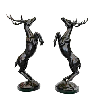 • Set Details: Includes two bronze deer sculptures mounted on solid pedestals