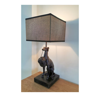 • Material & Design: Decorative table lamp with a finely sculpted greyhound base and rustic finish