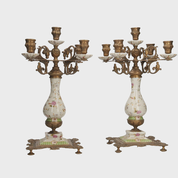 A remarkable pair of candlesticks, beautifully hand-painted in porcelain and adorned with ornate bronze accents. These refined pieces exude sophistication and artistry, making them true statement pieces in any elegant interior. Perfect for formal dining rooms, mantel displays, or as decorative centerpieces.