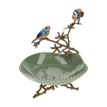 • Design: Porcelain bowl featuring bronze branches and hand-painted porcelain birds