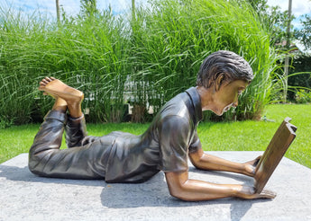Bring peaceful charm, artistry, and craftsmanship into your garden with this bronze boy reading sculpture. Order today to create a timeless and inspiring outdoor space.