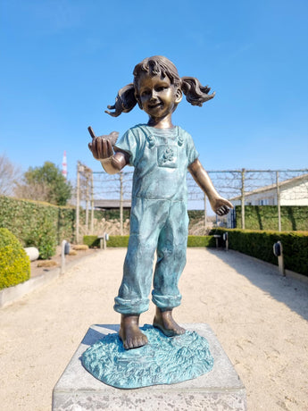 Add grace and charm to your garden or home with this bronze sculpture of a young girl holding a bird. Beautifully detailed and fully handcrafted from solid bronze, this elegant piece captures a tender and peaceful moment, blending art and nature in perfect harmony.