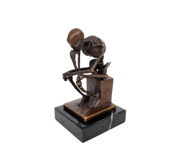 Bronze Skeleton Thinker Figurine | 15 cm / 6 in | Rodin-Inspired Art, Philosophical Sculpture, Unique Gift for Collectors