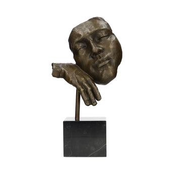 A striking abstract bronze sculpture depicting a face resting on its hand, symbolizing introspection and thought. This modernist artwork combines emotional depth with contemporary design, making it a captivating centerpiece for any space. Crafted with refined detail and finished in rich bronze tones, it evokes a sense of mystery and contemplation — perfect for modern interiors, art collectors, and lovers of meaningful decor.