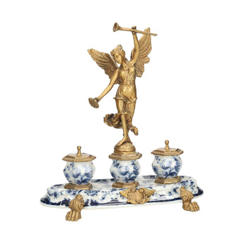 A luxurious porcelain and bronze inkwell that brings sophistication and timeless charm to any space.