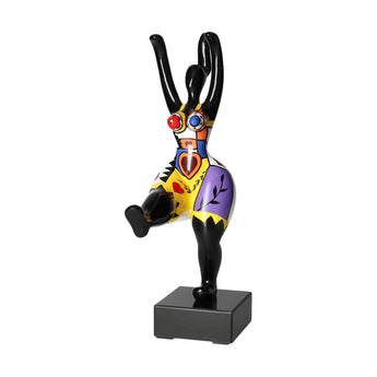 A lively contemporary figurine of a plump lady dancer, brought to life in vibrant colors. Crafted from high-quality resin and elegantly mounted on a natural stone base, this cheerful sculpture exudes energy and joy. Its expressive form and bold palette make it a perfect statement piece for modern interiors.