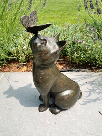 Bring playful elegance and fine craftsmanship into your home or garden with this exquisite bronze cat and butterfly sculpture. Order today to enjoy a timeless expression of beauty and charm.
