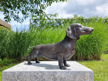 Add joy, craftsmanship, and character to your home or garden with this delightful bronze Dachshund sculpture — a timeless tribute to loyalty and companionship.