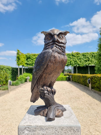 Blending timeless symbolism with outdoor artistry, this bronze owl sculpture enriches any space with elegance, meaning, and natural charm — a captivating centerpiece for nature-inspired settings.