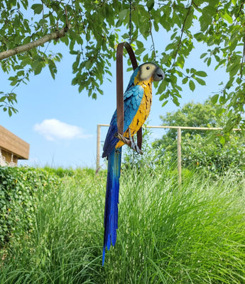 Add vibrant charm to your home or garden with this large metal parrot on swing. Beautifully crafted with bright colors and intricate details, it’s perfect for indoor or outdoor spaces, patios, or hanging from a tree.