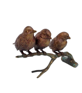 Bronze Bird Sculpture | 21 cm / 8.2 in | Three Sparrows on Branch – Handcrafted Nature-Inspired Decor