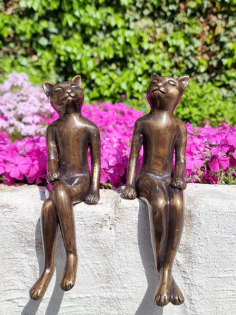 Bronze Cat Couple Sculpture Set | 24 cm / 9.6 in | Ledge Decor, Garden Accent, Gift for Cat Lovers & Collectors
