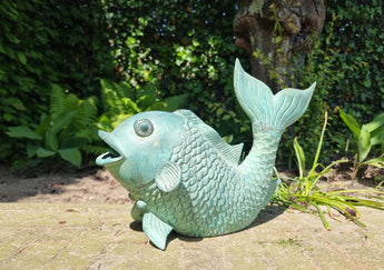 Bronze Fish Fountain | 24 cm / 10 in | Garden Water Feature, Pond Decor, Functional Outdoor Art, Nature-Inspired Gift