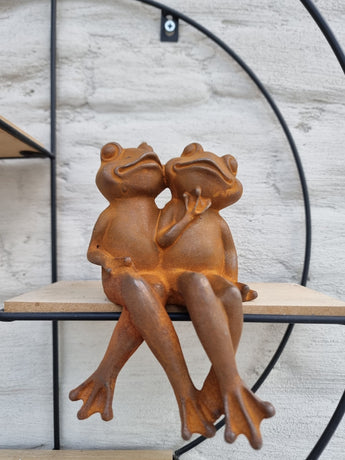 Bronze Frog Couple Sculpture | 18 cm / 7.4 in | Romantic Ledge Decor, Garden Accent, Couple gift idea