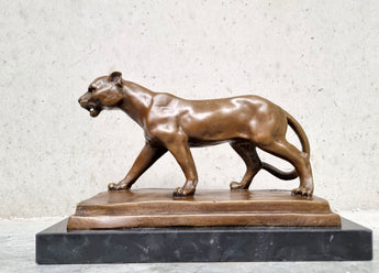 Celebrate the power and elegance of nature with this finely detailed bronze lioness sculpture — a lifelike portrayal of grace in motion. Expertly handcrafted from solid bronze, this piece captures the noble strength of a walking lioness, making it a perfect centerpiece for both modern and traditional interiors.