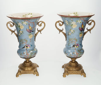 Set of 2 Porcelain and Bronze Vases | 35 cm / 14 in | Luxurious Gift Choice