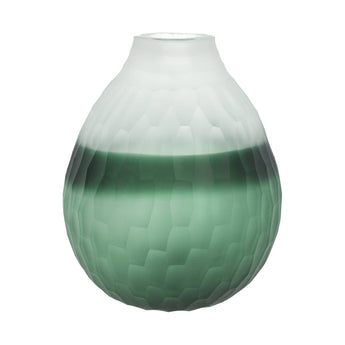 This frosted art glass vase has a gentle green gradient that feels calm and fresh. The faceted surface gives it a matte sparkle under daylight and warm lamps, making it a simple centerpiece that still looks special on a shelf or table.