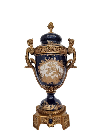 Add a touch of opulent elegance to your interior with the Opulent Elegance Sèvres Style Porcelain Vase — a magnificent piece that radiates refinement, artistry, and grandeur. With its regal design, intricate hand-painted details, and bronze-colored ornaments and handles, this vase is a statement of timeless sophistication.