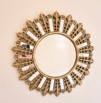 Add a warm golden glow to your home with this sunburst wall mirror — a perfect fusion of elegance, retro charm, and timeless design.