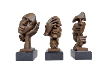 This elegant set of three bronze sculptures depicts the classic "Hear No Evil, See No Evil, Speak No Evil" proverb. Perfect for home, office, or garden, these symbolic statues bring modern sophistication and philosophical depth to any space.