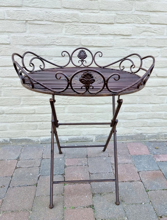 Klapptisch mit Blumenmuster | Romantischer rustikaler Metallpflanzenständer für Innen- und Außendekor – 70 cm