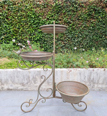 • Diseño: soporte de jardín de tres niveles para alimentar aves, contener un pequeño baño y exhibir plantas en una sola estructura vertical