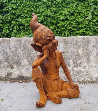 Escultura de Gnomo de Jardín Soñador de Hierro Fundido | 40 cm / 16 in | Símbolo de tranquilidad y encanto mágico del jardín
