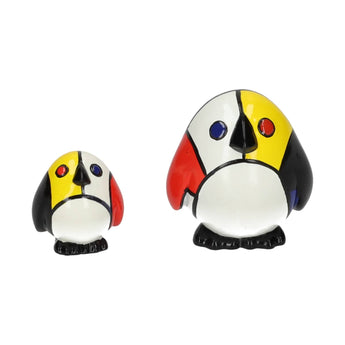 Une interprétation ludique et artistique du style abstrait emblématique de Piet Mondrian. La collection La Ménagerie Géométrique transforme des animaux familiers en compositions géométriques colorées inspirées de l'utilisation caractéristique des lignes, formes et couleurs primaires par Mondrian. Les manchots de cette série allient art et fantaisie, en faisant un accent décoratif ou un objet de collection charmant.