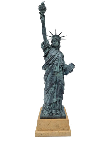 Célébrez la liberté avec cette réplique en bronze de la Statue de la Liberté dotée d'une patine bleue saisissante et d'un socle en marbre massif. Une pièce décorative audacieuse pour les foyers patriotiques, les bureaux ou les amateurs d'histoire.