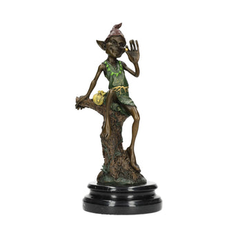 Une charmante sculpture en bronze d'un gobelin au repos, réalisée avec un détail expressif et un caractère imaginatif. La pose détendue et les traits finement texturés soulignent la nature fantaisiste de cette figure mythique, en faisant un objet de collection délicieux pour les passionnés de fantasy et les amateurs d'œuvres en bronze uniques.