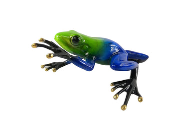 Scultura di rana della foresta pluviale in bronzo blu | 20 cm / 7,9 in | Rana in bronzo realistica