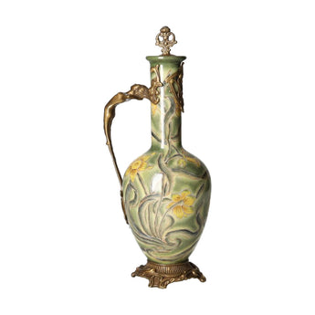 Aggiungi un'eleganza senza tempo al tuo interno con questa karaffe in porcellana con manici e ornamenti in bronzo. Progettata in uno stile raffinato Art Nouveau, presenta motivi floreali intricati e dettagli delicati in bronzo — un pezzo di maestria artigianale e grazia.