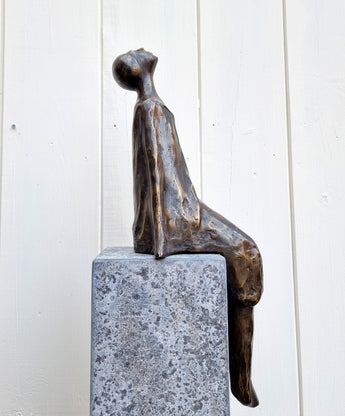Zeer mooi modern en abstract beeldhouwwerk van een zittende vrouw die naar de sterren kijkt. Dit elegante bronzen kunstwerk, getiteld The Star Gazer, vangt een moment van reflectie en nieuwsgierigheid. Een opvallend decoratief stuk dat artistieke diepte toevoegt aan elk interieur.