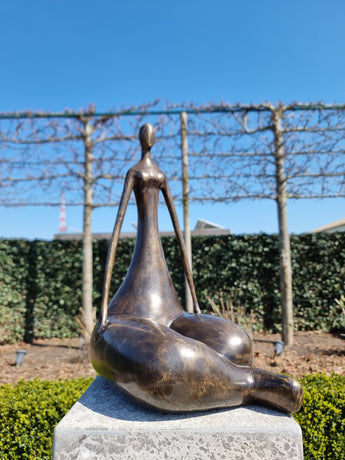 Minimalistisch zittende vrouw bronzen beeld | 28 cm / 11.2 in | Elegante symbolische kunst