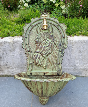 Gietijzeren wandfontein met paardenmotief | 60 cm / 23.6 in | Binnenplaatsfeature, tuinwandkunst
