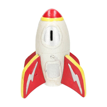 • Design: A rocket-shaped coin bank that combines retro character with practical storage for coins