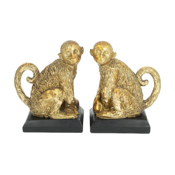 Gold Monkey Bookends Set | 18 cm / 7.1 in | Decorative polyresin book supports