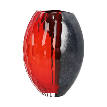 This crystal vase pairs a deep red, faceted surface with a matte black side for a strong, modern look. The sculpted texture catches light from every angle, so it works as a centerpiece on its own or with a few simple stems.