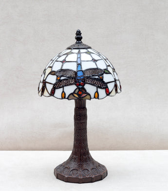 Tiffany Dragonfly Table Lamp | 34.5 cm / 13.6 in | Cream shade with dragonfly band and jewel accents