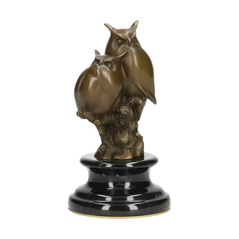 Uma encantadora escultura em bronze de duas corujas empoleiradas num ramo, trabalhada com detalhes finos e carácter expressivo. Esta peça deliciosa acrescenta calor e simbolismo a qualquer interior, tornando-se tanto um acento decorativo como uma obra de arte significativa.